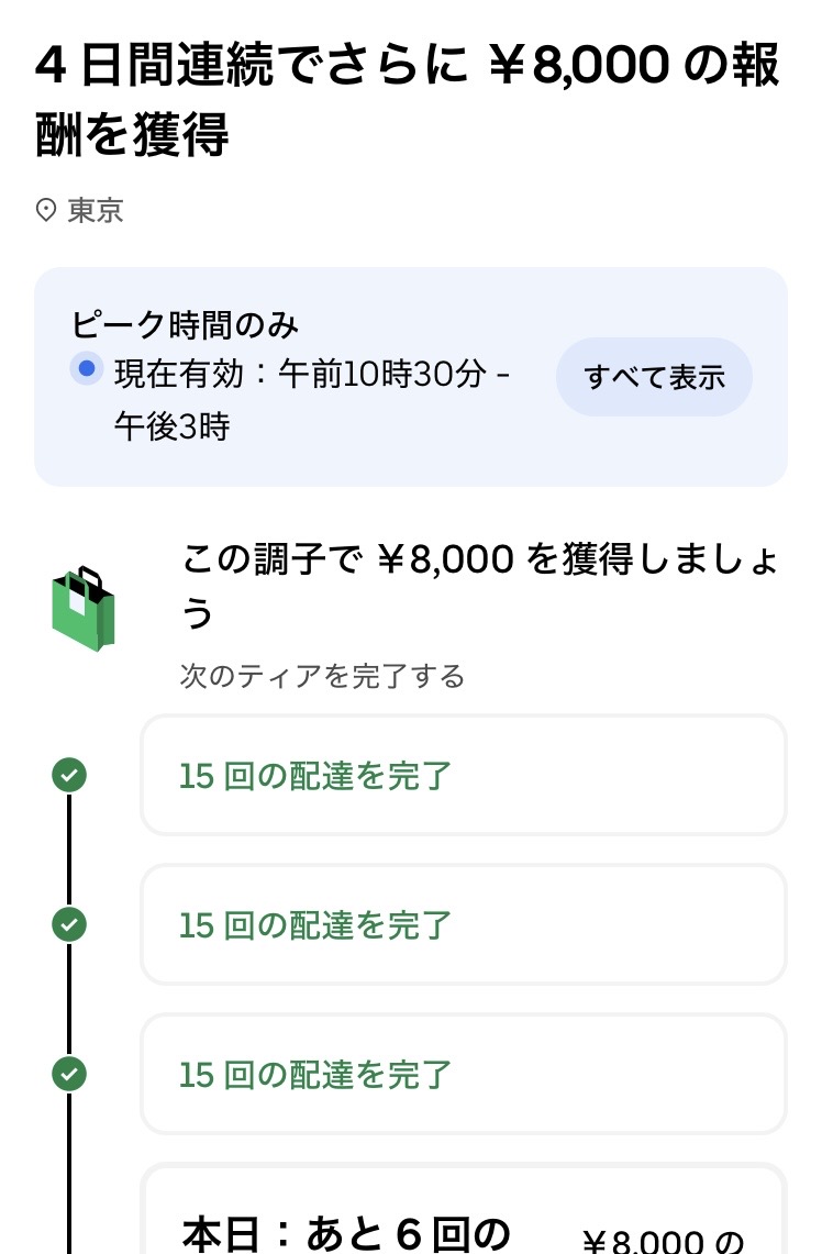 Uber Eats Japanの代表が変わって、色々なインセンティブができて、モチベーションを管理してもらっている感じがします。