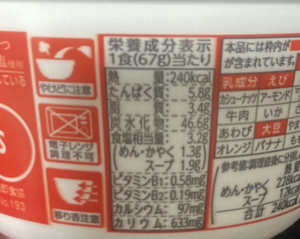 ノンフライ麺のこの商品、カロリーがなんと。。。。