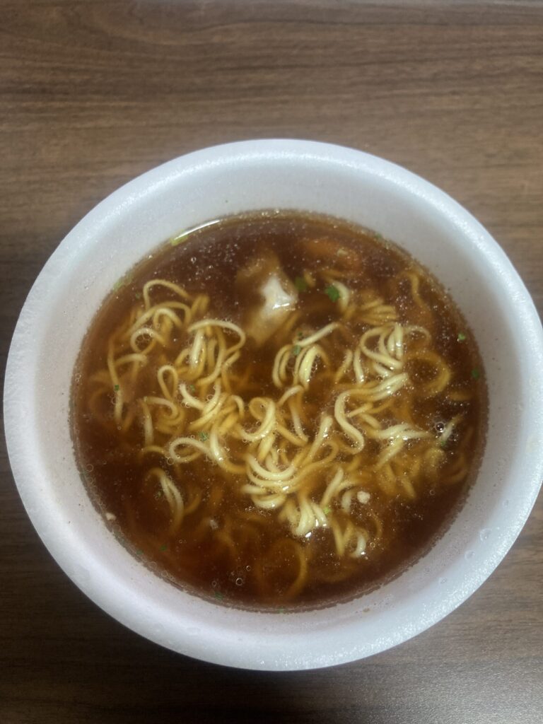 わんたんが数個入っていて、味も普通のカップ麺で美味しいです。