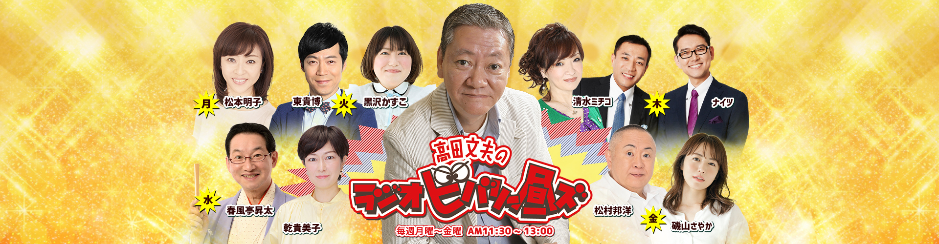 高田文夫のラジオビバリー昼ズ 毎週月 – 金曜 11:30 – 13:00