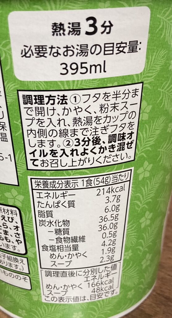 腹持ちがいいこのカップ麺、カロリーがなんと、214カロリーしかありません!