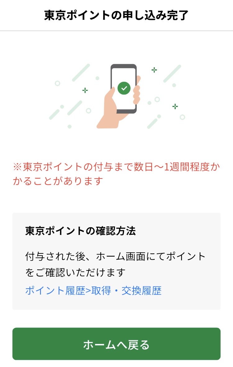 申請しポイントが付与されるまで、数日かかる的なメッセージが出ていたのですが、数時間しかかかりませんでした。